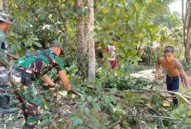 Kubu Raya - Pelaksanaan TNI Manunggal Membangun Desa (TMMD) reguler-111 Kodim 1207/Pontianak di Desa Kuala mandor B K