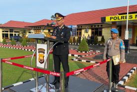 Mukomuko - Kepala Kepolisian Resor Mukomuko AKBP Yana Supriatna, S.I.K,M.Si memimpin Upacara Serah