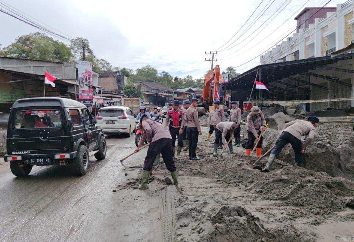 Bener Meriah — Pascabencana banjir dan tanah longsor yang sempat mengganggu arus lalu lintas, Polres Bener Meriah ber
