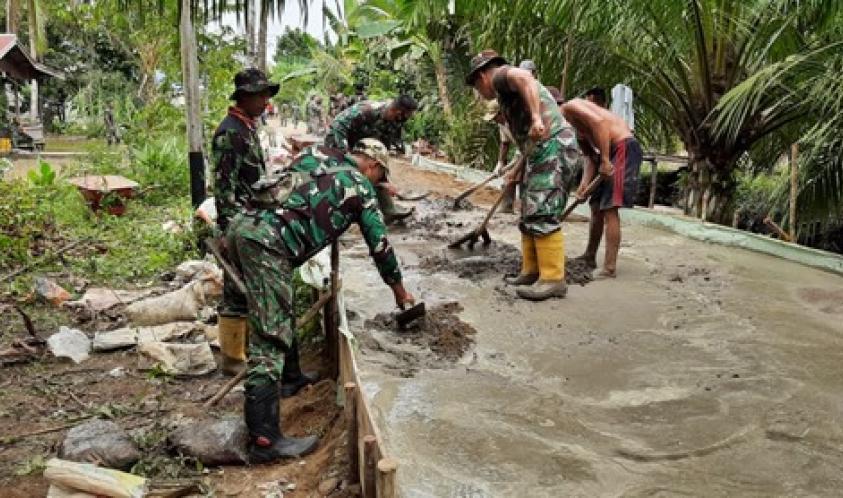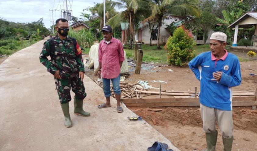 Kubu Raya - Personil satgas TMMD terus membangun komunikasi sosial (komsos) bersama warga Dusun Maju Jaya, Desa Kuala Mandor B, Kecamatan Kuala Mandor B, Kabupaten Kubu Raya yang merupakan lokasi TMMD ke-111 Kodim 1207/Pontianak, Sabtu (17/07/2021).