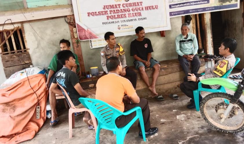 Kaur - Guna menampung keluhan warga, Polsek Padang Guci Hulu Polres Kaur Polda Bengkulu kembali menggelar Jumat Curhat diwilayah hukum Polsek Tanjung Kemuning, Jumat (31/3/2023).