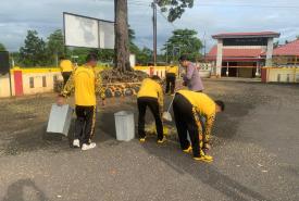 Dengan Giat Jumat Bersih, Kapolsek Ketahun Pimpin Kerja Bakti Di Lingkungan Mako Polsek