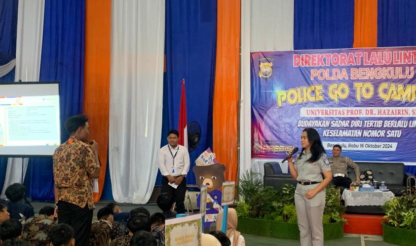 Jasa Raharja Bengkulu berperan sebagai narasumber dalam kegiatan Police Goes to Campus yang diselenggarakan oleh Universitas Hazairin Bengkulu pada hari Selasa (16/10/2024). Kegiatan ini bertujuan untuk mengedukasi Safety Campaign kepada mahasiswa mengenai pentingnya tertib berlalu linta, guna menciptakan keamanan di jalan.