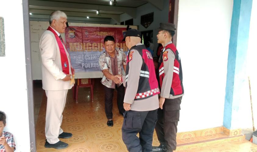 Seluma - Minggu (03/11/2024), Personel Polsek Sukaraja melaksanakan kegiatan Minggu Kasih bersama masyarakat dan jemaat Gereja GPDI Elshadai di Desa Sarimulyo, Kecamatan Sukaraja, Kabupaten Seluma. Kegiatan ini bertujuan untuk mendengarkan aspirasi dan keluhan warga, terutama terkait keamanan dan ketertiban masyarakat (Kamtibmas) di Desa Sarimulyo.