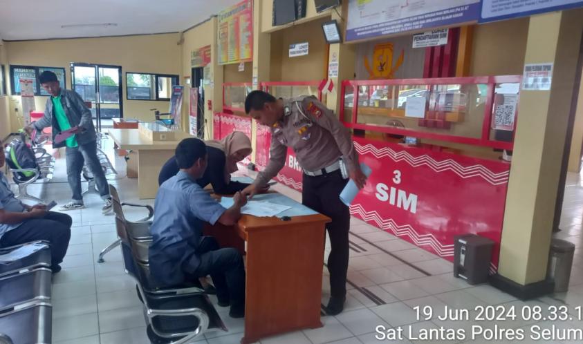 Seluma - Rabu (19/06/2024) bertempat di ruang Pelayanan Sim Sat Lantas, unit Regident melaksanakan tugas rutin berupa pelayanan kepada masyarakat yang ingin mencetak SIM (Surat Izin Mengemudi).